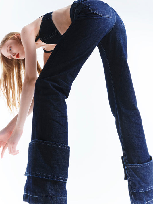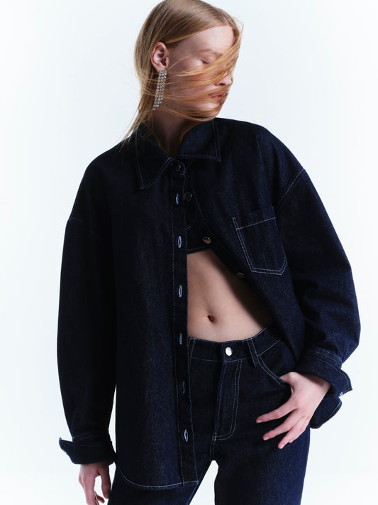 Every piece of denim bearing the Myhra Paris label results from a meticulous manufacturing process. The fabric is dyed using traditional methods, often with natural indigo, a dye that gives denim its iconic color and its ability to age beautifully over time.