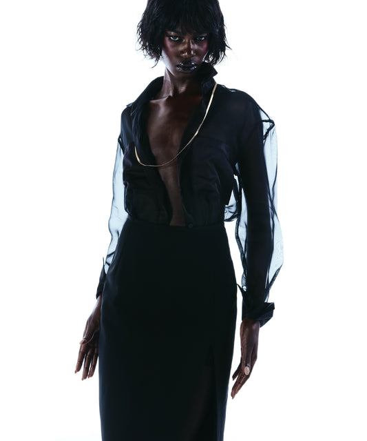 Myrha Paris's expertise is reflected in every detail. The brand perfectly masters the use of silk, a noble and delicate material, to create garments with a unique and timeless design. Through this collection, the brand highlights the essence of the modern woman—independent and sensual, embodying strength and self-confidence with a touch of refined seduction. The core values of the brand: strength, independence, and sensuality. Designed for women who are unapologetically powerful and confident, this shirt embodies ultimate refinement.
